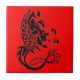 Este azulejo vermelho com um design do dragão é uma decoração original para cada mesa. Pode igualmente ser moldado e usado como uma decoração da parede.