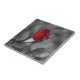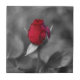 Este azulejo caracteriza um rosebud vermelho em contraste com o fundo preto e branco.