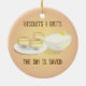 Ornamento com um prato de biscoitos sorridentes e uma taça de gritos feliz. As palavras "Biscoitos e Gritos o dia é salvo!" fazem parte do design e podem ser personalizadas.