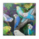 O design original das belas artes de parakeets coloridos do budgerigar nas samambaias pelo artista Carolyn McFann do estúdio de ronrom de dois gatos imprimiu em um azulejo da qualidade para amantes do papagaio.