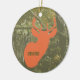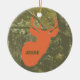 Um ornamento que caracteriza uma ilustração de um cervo alaranjado dirige sobre um fundo da camuflagem. Personalize com seu nome.