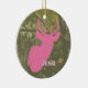 Um ornamento que caracteriza uma ilustração de um cervo cor-de-rosa dirige sobre um fundo da camuflagem. Personalize com seu nome.
