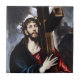 Cristo El Greco Carregando O azulejo Cruzado. Pintura a óleo na Canvas 1578. El Greco criou algumas das pinturas mais famosas de Jesus. O Carregando cristo da Cruz é uma das pinturas cristãs mais reconhecidas do mundo. O artista retrata o Cristo vestindo uma túnica azul e vermelha com sua cabeça enfeitada com uma coroa de espinhos. A cruz é ancorada sobre os ombros esquerdo enquanto as nuvens se rompem no fundo. Um presente de excelente para fãs de El Greco, de Jesus Cristo, Páscoa, arte católica e pinturas religiosas.
