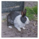 Uma bela fotografia de um coelho preto e branco impresso num azulejo cerâmico.