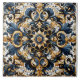 Esse padrão de azulejo cativante mostra uma elaborada mostra de motivos florais interligados com rolos elegantes. As ricas cores azuis e douradas cintilantes criam um ambiente luxuoso, ideal para aprimorar qualquer espaço interior ou decoração artística.