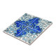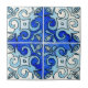Arte por Marta Harvey. Cada azulejo azul pequeno neste design foi imprimido com um bloco cinzelado mão, pintado com aguarelas e esboçado com caneta & tinta. Este design foi inspirado pelos azulejos portugueses, chamados azulejos.