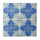Arte por Marta Harvey. Cada azulejo azul pequeno neste design foi imprimido com um bloco cinzelado mão, pintado com aguarelas e esboçado com caneta & tinta. Este design foi inspirado pelos azulejos portugueses, chamados azulejos.