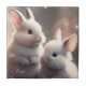 Um azulejo cerâmico muito doce com dois coelhos fofos e flores de cereja.