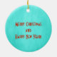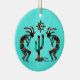 Personalize este Enfeites de natal "Um dos tipos" do sudoeste de Kokopelli! Ele apresenta dois Kokopelli sudoeste em Turquoise, laranja e preto tocando flauta e dançando ao redor de um cacto...Sob o Sol num Fundo Turquesa! Design De Arte Original Pelo Artista Kerry Miller.