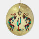 Personalize este Enfeites de natal "Um dos tipos" do sudoeste de Kokopelli! Ele apresenta dois Kokopelli sudoeste em Turquoise, laranja e preto tocando flauta e dançando ao redor de um cacto...Sob o Sol em um Dourado Fundo! Design De Arte Original Pelo Artista Kerry Miller.
