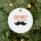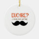 Euchre Enfeites de natal de humor para seu jogador de cartas favorito. "Euchre? Eu Nunca A Conheci!" O ornamento engraçado está em um escrevendo cor de laranja, castanho e preto sobre um fundo branco.