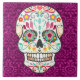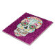Este azulejo decorativo caracteriza um divertimento & um crânio festivo em um fundo do damasco do coração - excelente do açúcar como portas copos, trivets ou acentos decorativos