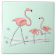 design com um toque retrorreflector, inspirado no século médio, com um grupo de flamingos cor-de-rosa na água contra um fundo verde-claro-aqua. Um design personalizável para você personalizar com seu próprio texto, imagens e ideias. Uma imagem de arte digital original criada por Jess Perry no QuirkyChic Retro.