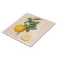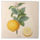 o azulejo lustroso resistente de 6 x 6 polegadas caracteriza a fruta e a flor alaranjadas com texto francês dos botanicals do francês do vintage. Acento de Perfet para uma cozinha francesa do país ou a cozinha da casa da quinta.