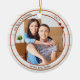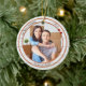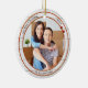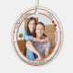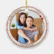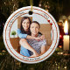 Um ornamento moderno com sua foto personalizada, enquadrada por um design de madeira branco rústico com revestimento metálico vermelho e estrelas elegantes. Bonito para um primeiro Natal em uma nova casa e personalizável para outras situações.