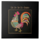 Este galo colorido fica no meio deste azulejo elegante. Preto e multicores. Texto colorido do ouro e borda. O texto diz "Er-Er-Er-Er-Errr". Personalizar este item ou comprar conforme projetado. imagem de estoque freepik.com
