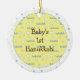 Hanukkah "Bubeleh" Ornamento do Círculo Azul/Amarelo. (2 de lado) Personalize eliminando "Hanukkah, 1rua do bebê" na frente e atrás do ornamento. Em seguida, usando a cor, o tamanho e o estilo da sua fonte favorita, digite as suas próprias palavras. Obrigados para parar e comprar. Muito apreciado! Feliz Chanukah/Hanukkah! Dê vida à dcoração da sua árvore com um ornamento de cerâmica personalizado. Adicione fotos de família, amigos e uma mensagem pessoal aos dois lados deste ornamento. Um fio de ouro torna fácil pendurar esta fantástica marca de sempre. Dimensões: Diâmetro: Espessura de 2,87": 0,156" Peso: 1,4 oz. Feita de pintura branca de Cheio de porcelana, impressão em cheio em ambos os lados