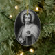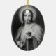 Este ornamento cerâmico dado forma oval tem uma pintura velha de Jesus guardarar um coração que tenha uma coroa de espinhos em torno dela.