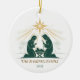 Celebrar a fé e a família com este elegante ornamento da silhueta da Natividade. Possui uma estrela radiante sobre a Santa Família, personalizada com seu nome de família e ano. As costas adicionam uma benção calorosa de Natal — uma manutenção eterno para a sua árvore ou para presentear com amor.