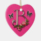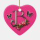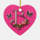 Letra B do monograma com cor-de-rosa e borboletas em um ornamento da forma do coração.