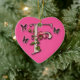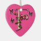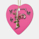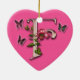 A letra F do monograma com cor-de-rosa e as borboletas em um coração deram forma ao ornamento.