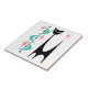 Meu design de Gato Atômico Negro com Bumerangue Aqua e Starbursts rosa em um azulejo cerâmico branco. Todas as imagens protegidas ©Donna Mibus. Minha imagem de Atum Atômico está registrada no Escritório de Direitos Autorais dos EUA. Nenhuma parte dele pode ser usada ou copiada sem permissão. Visite https://donna-mibus.pixels.com/ para mais informações sobre o meu trabalho.
