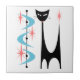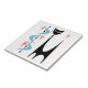 Meu design de Gato Atômico Preto com Bumerangue Azul e Starbursts Rosa em um azulejo cerâmico branco. Todas as imagens protegidas ©Donna Mibus. Minha imagem de Atum Atômico está registrada no Escritório de Direitos Autorais dos EUA. Nenhuma parte dele pode ser usada ou copiada sem permissão. Visite https://donna-mibus.pixels.com/ para mais informações sobre o meu trabalho.