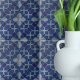 Introduzindo um design de azulejo de cerâmica excepcional que apresenta um padrão geométrico cativante em tons de azul e cinza. Inspirando-se nos azulejos portugueses Azulejo eternos, este padrão se destaca lindamente contra um pano de fundo semelhante a uma pedra meteorizada.
