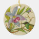 Imagem do cartão do aniversário do vintage que caracteriza orquídeas e um colibri. O verso lê "muitos retornos do dia".