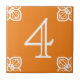 Azulejo do número da casa em espanhol. Fundo laranja. Personalizar cores.