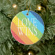 Este design moderno e colorido comemora a lei nova da igualdade do casamento. Caracteriza um fundo com linhas nas cores do arco-íris e as palavras "amam vitórias" nas letras brancas. Este design à moda comemora o amor e o casamento para pessoas retas e alegres. Adicione os nomes e a data do casamento no verso para um toque personalizado.