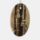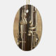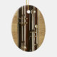Vestir-lo como um pendente ou pendure-o acima como um ornamento: uma forma oval cerâmica com duas ideias diferentes do detalhe dos mecanismos chaves em um fagote, contra um fundo da madeira-grão que contraste com o instrumento próprio.
