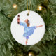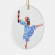 Ilustração bonita pelo artista da fantasia, Mitzi Sato-Wiuff. Este ornamento caracteriza Clara em uma luz - vestido azul, guardarando uma boneca do nutcracker. Um presente perfeito para o dançarino em sua vida. Adicione o texto (nome, ano do desempenho, etc.) para personalizar.