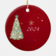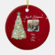 Envie votos calorosos para este feriado com nosso presente de ornamento de natal de árvore de Natal, com a nossa melancolia esbranquiçada, apresentando sua foto pessoal! Esta design deliciosa mostra uma bela árvore de Natal ilustrada em matizes verdes ricos, adornada com fitas ouros balançando, flocos de neve brancos e ornamentos de aquarela fofinhos. Colocado contra um fundo vermelho festivo, este cartão irradia felicidade de férias Com espaço para suas memórias favoritas, é a maneira perfeita de compartilhar memórias com familiares e amigos. Crie um nome único que captura a magia da estação!
