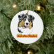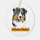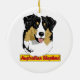 Um pastor australiano do merle azul (australiano) em um lado e em um preto tri no reverso deste ornamento.