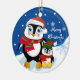 Ornamento com os dois pinguins bonitos dos desenhos animados em uma paisagem nevado do inverno com flocos de neve. O texto (em ambos os lados) "Feliz Natal" pode ser personalizado. Se você não gosta de nenhuma supressão do texto apenas ele.