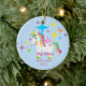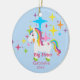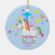 Queira algo especial para esse irmão mais idoso? Este ornamento será uma lembrança por muitos próximos anos. Tem claro - fundo azul com uma onda de estrelas coloridas brilhantes. Há um unicórnio com uma juba e uma cauda brilhantes, coloridas. Personalize com um nome e um ano. Nós igualmente temos uma irmã mais nova, e uma irmã média neste design.