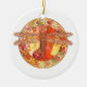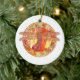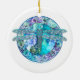 Uma libélula com as asas celtas e o corpo do knotwork, cercados por um design espiral celta da aguarela. Laranja em um lado, azul no outro.