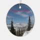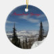 Imagem do fundo tomada da parte superior do recurso do barco a vapor/área do esqui em Steamboat Springs, Colorado. Entre os 2 pinheiros você pode ver Steamboat Springs do centro, e a beleza das montanhas rochosas em qualquer lugar você olhar.