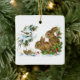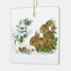 Ornamento cerâmico quadrado com duas cenas de animais adoráveis da floresta. Os coelhos na parte dianteira e as raposas suportam sobre.