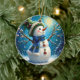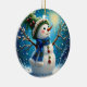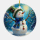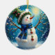Adorável Snowman vestindo um chapéu colorido e um conjunto de lenços alegremente se mantém debaixo de um glorioso sol de manhã.