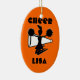 O ornamento do cheerleader pode ser personalizado com nome, nome da equipe, ou o outro texto. Grandes presentes para o pelotão ou o treinador do elogio no Natal ou no algum feriado. Personalize com seu texto em ambos os lados ou o texto pode ser removido. A cor do fundo pode ser mudada a sua cor da equipe. Ano do uso redondo para trações, pendentes, ou cair do fã em espelhos de carro. Seja criativo!
