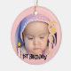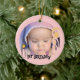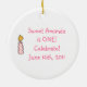 Ornamento da lembrança do primeiro aniversario do bebê com uma vela cor-de-rosa que você possa facilmente personalizar com foto do bebê e adicione seu próprio texto à parte traseira. É grande como um presente de primeiro aniversario e será uma lembrança do nascimento e do ø birhday do bebê para os próximos anos.