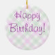 Este adorável ornamento faria uma maravilhosa, se inesperada, adição à sua árvore de Natal, mas também faria um belo presente de aniversário; uma fob fantástica para uma cesta de presentes ou Páscoa; um ótimo pingente para aqueles ávidos fabricantes de joias. Há tantas maneiras de usar este ornamento maravilhoso. Este design é sutil e espetacular! Um cosmos assombroso e bicolor é aninhado em uma rodada de um magnífico local metálico que quase parece camadas de borboletas delicadas. O reverside é um fundo de pranchas supersas em coordenação rosa e verde, no qual coloquei "Feliz Aniversário". Você pode substituir este texto por um nome ou sentimento que atenda às suas necessidades ou ocasião específicas.