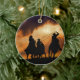 Cavalos e vaqueiros no ornamento do pôr do sol, isso faz um adorno de Natal divertido.