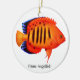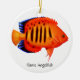 O design original das belas artes de um Angelfish colorido da chama pelo artista Carolyn McFann do estúdio de ronrom de dois gatos imprimiu em um ornamento customizável do feriado para o Natal ou a qualquer momento. A grande ideia do presente para o aquário do recife de corais da água salgada ventila.