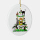 Design original das belas artes dos gatos que apreciam seus feriados em uma árvore ou em um condomínio decorado do gato pelo ilustrador Carolyn McFann do estúdio de ronrom de dois gatos. Ideia do presente de Purrfect para proprietários & fãs do gato.