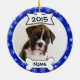 Criar seu próprio ornamento personalizado da foto do cão para sua árvore de Natal esta época natalícia. Grande adição a alguma decoração do Xmas dos amantes do cão para reconhecer um filhote de cachorro novo à família. Personalize com eles cães nome e ano. Este ornamento do animal de estimação será estimado para os próximos anos. O design e as fotografias criados por www.3Quarterstoday.com pedem projetam aproximadamente para o negócio e o uso pessoal.