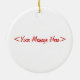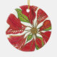 Adicione um ornamento artístico e elegante da poinsétia à árvore de Natal da sua família favorita. Os trabalhos de arte das características de design nas matiz de vermelho, de verde, e o ouro, com uma mensagem customizável no de volta a adicionam seu toque pessoal ao presente.