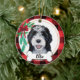 Ornamento de rabisco com fundo de búfalo vermelho e garland e arco de Natal - Arte foi pintada à mão por mim e disponibilizada como este adorável ornamento! Adicione qualquer texto (sugerido: "Eu ❤️ meu rabisco" ou o nome do seu docinho) visite www.curella.net para obter um retrato personalizado, adesivos e muito mais.